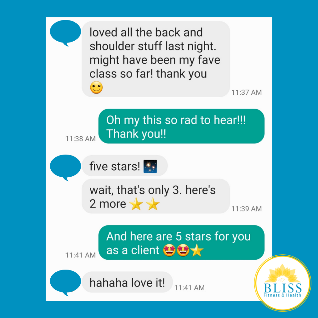 Nothing makes us feel quite as good as getting cute messages and responses from our clients. Messages like this are important for us to know we’re hitting the mark for our clients and helping them feel better in their bodies. It’s a bonus when your clients are also adorably clever and funny in their messages.
