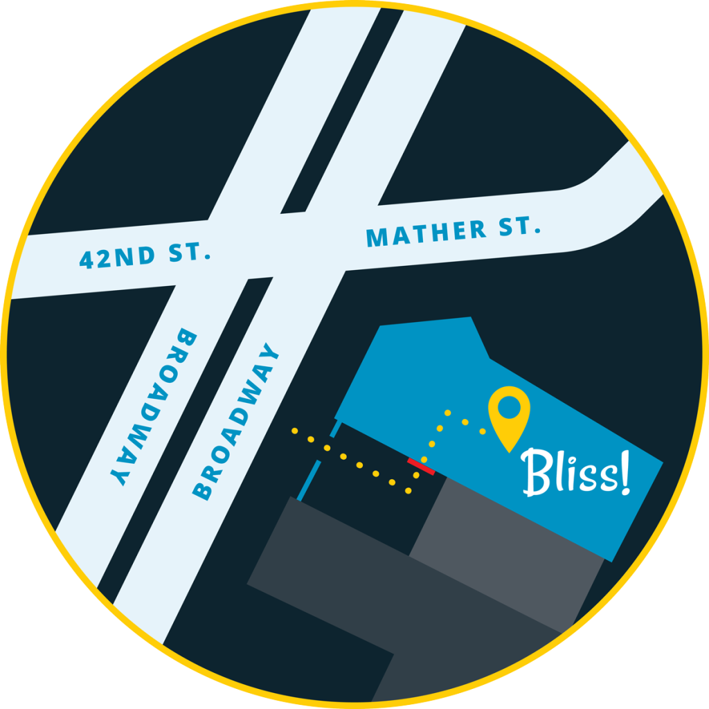 Find Us Above Blue Bottle Coffee on Broadway and Mather